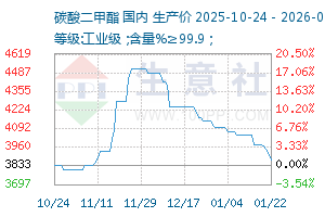 行情综述:价格持续下行 据生意社商品行情分析系统监测,截至1月16日,国内工业级碳酸二甲酯均价为3...[详细]